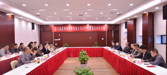 4月7日上午,公司在科发会展公司涪城厅召开了2017年度发展战略研讨会,会议由董事长倪丹主持,总经理王咏菠、副总经理魏东、廖代明、赵杨、财务总监李丽、总经理助理周玉刚,各职能部门负责人,特邀的四川省农业科学研究院、绵阳市农业科学研究院的研发、品种、发展战略专家及企业嘉宾参与研讨。